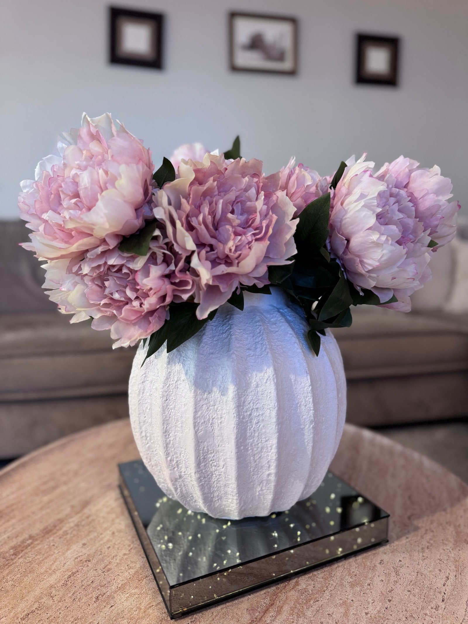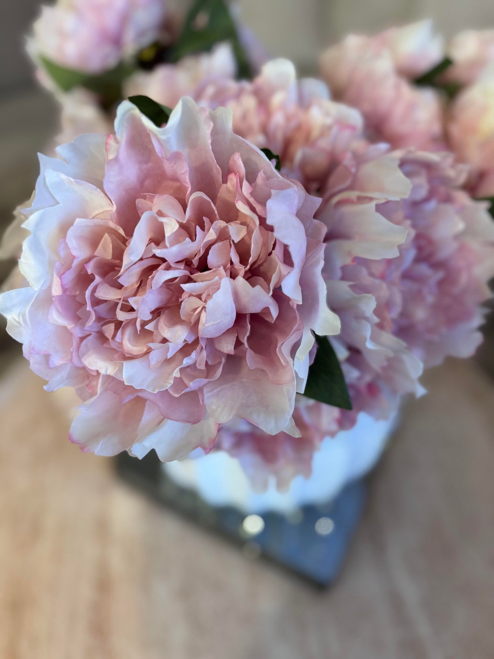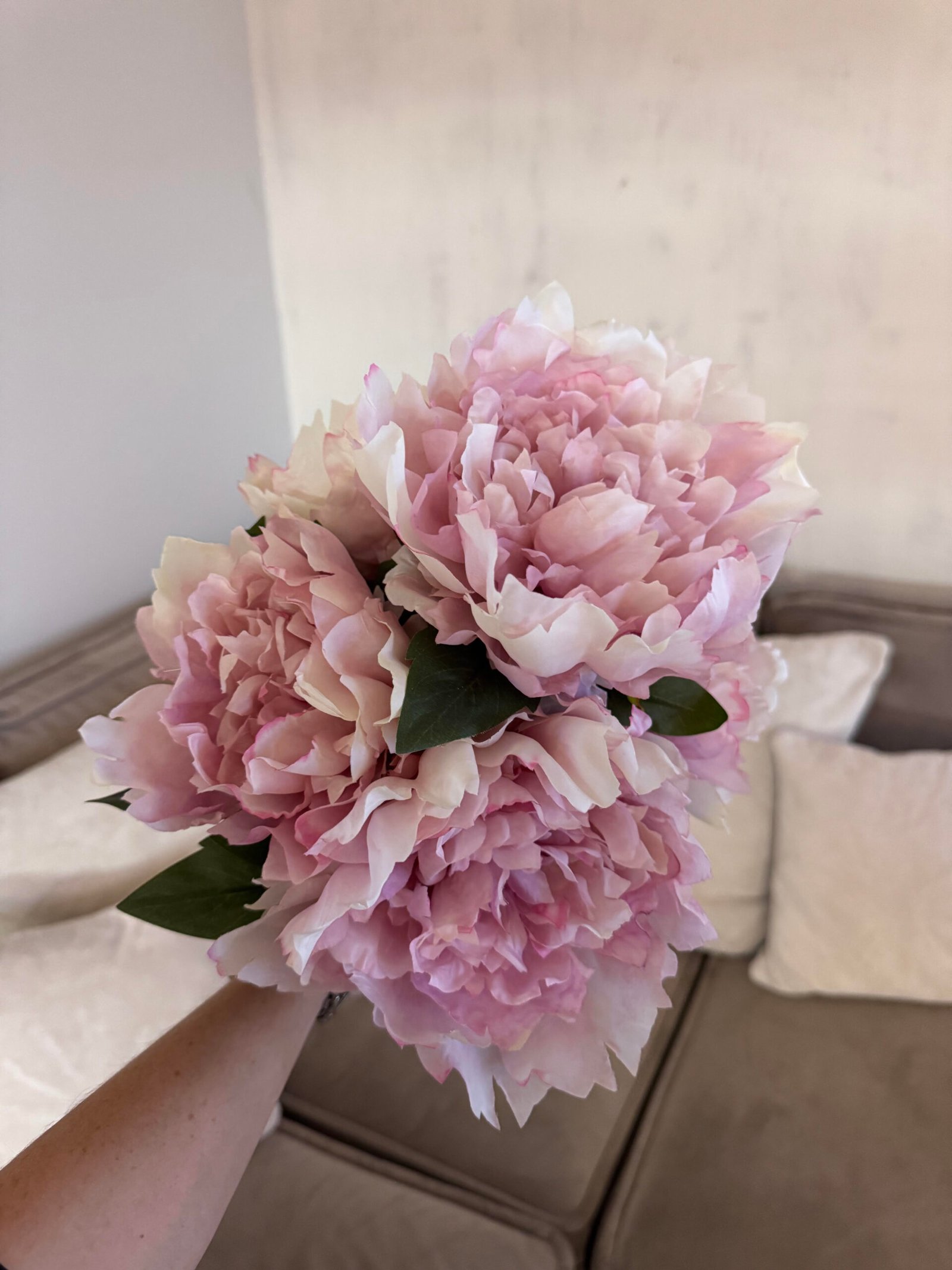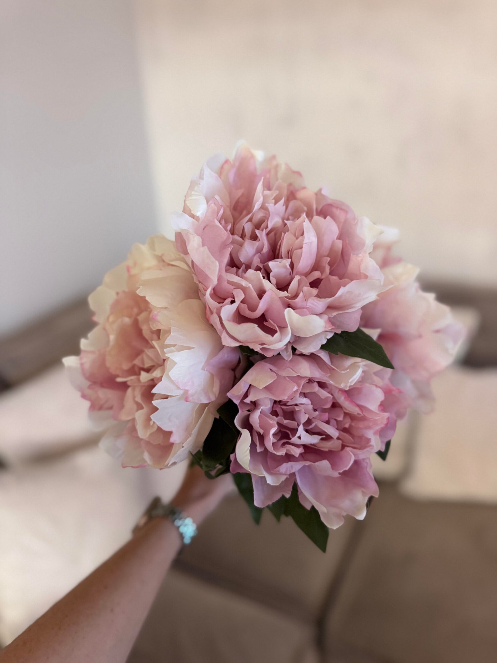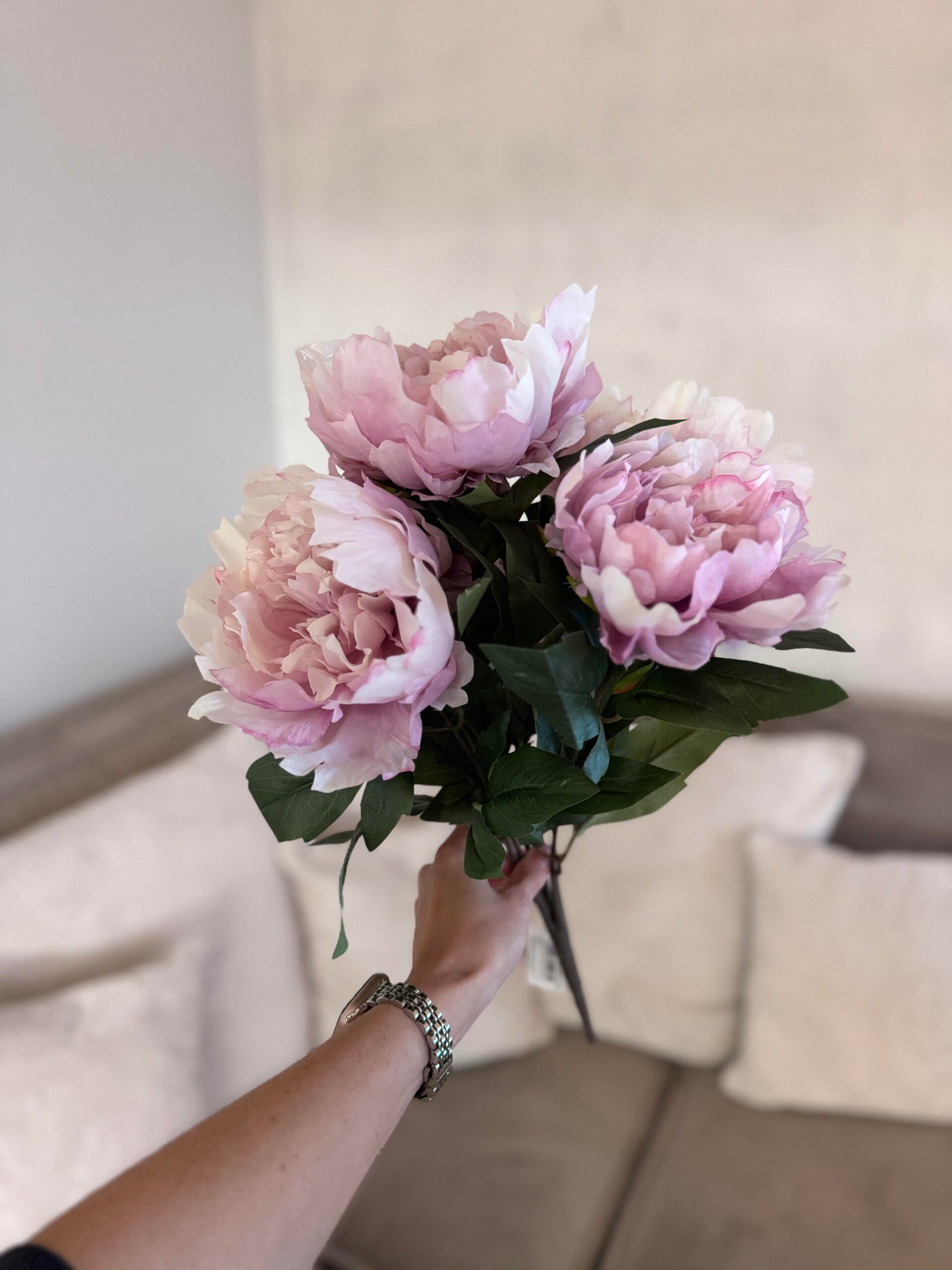 Šie bijūnai primena senąją lietuvišką pinavijų veislę, o švelni rožinė spalva idealiai tiks daugumai vazų. Norint išgauti pilnos puokštės efektą didelėms vazoms, rekomenduoju 2-3 šakas, o mažesnėms vazoms pilnai užtenka ir 1 šakos.