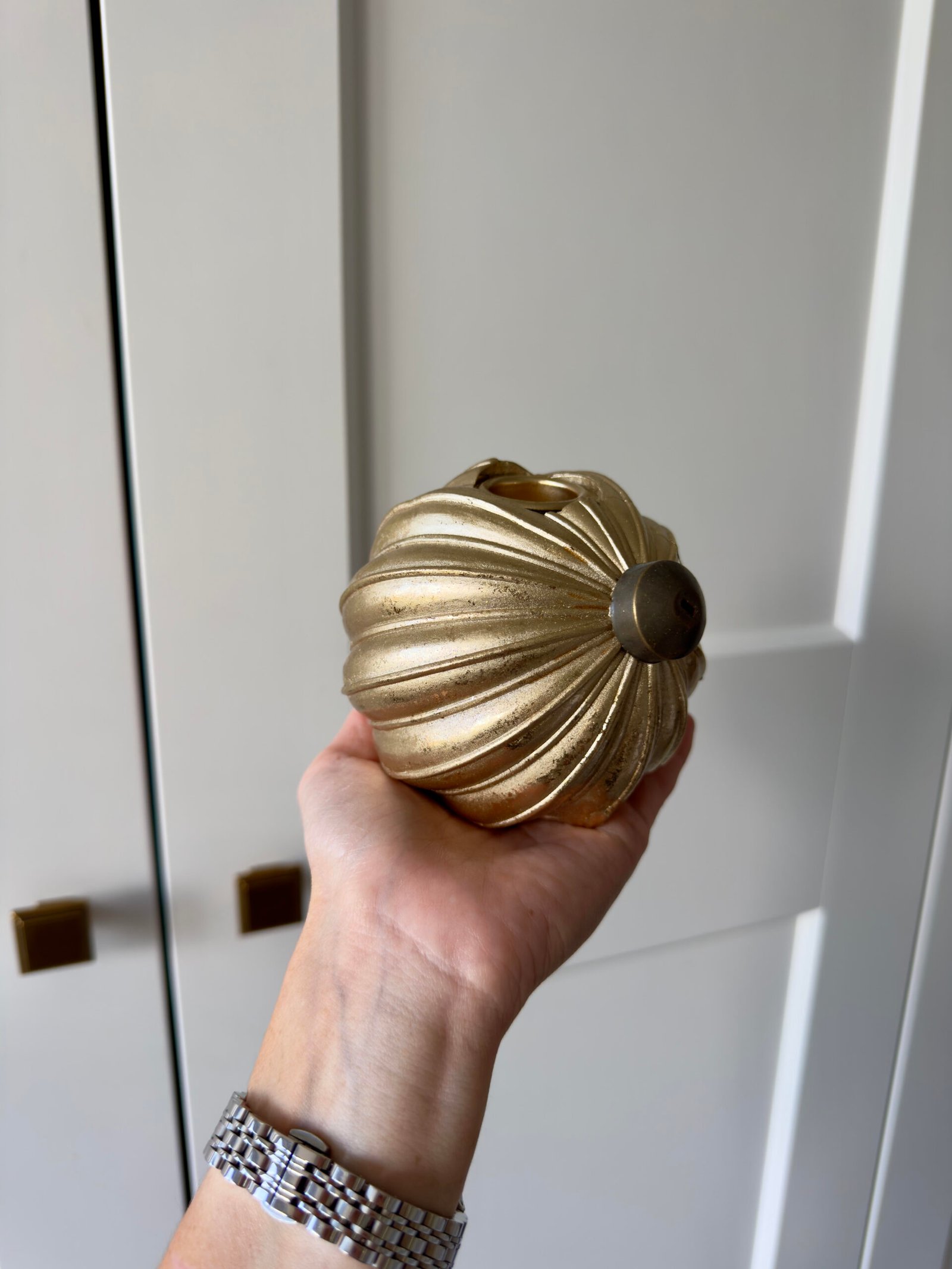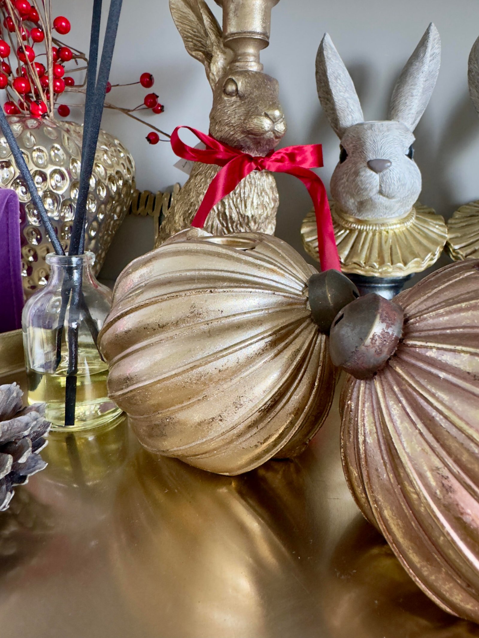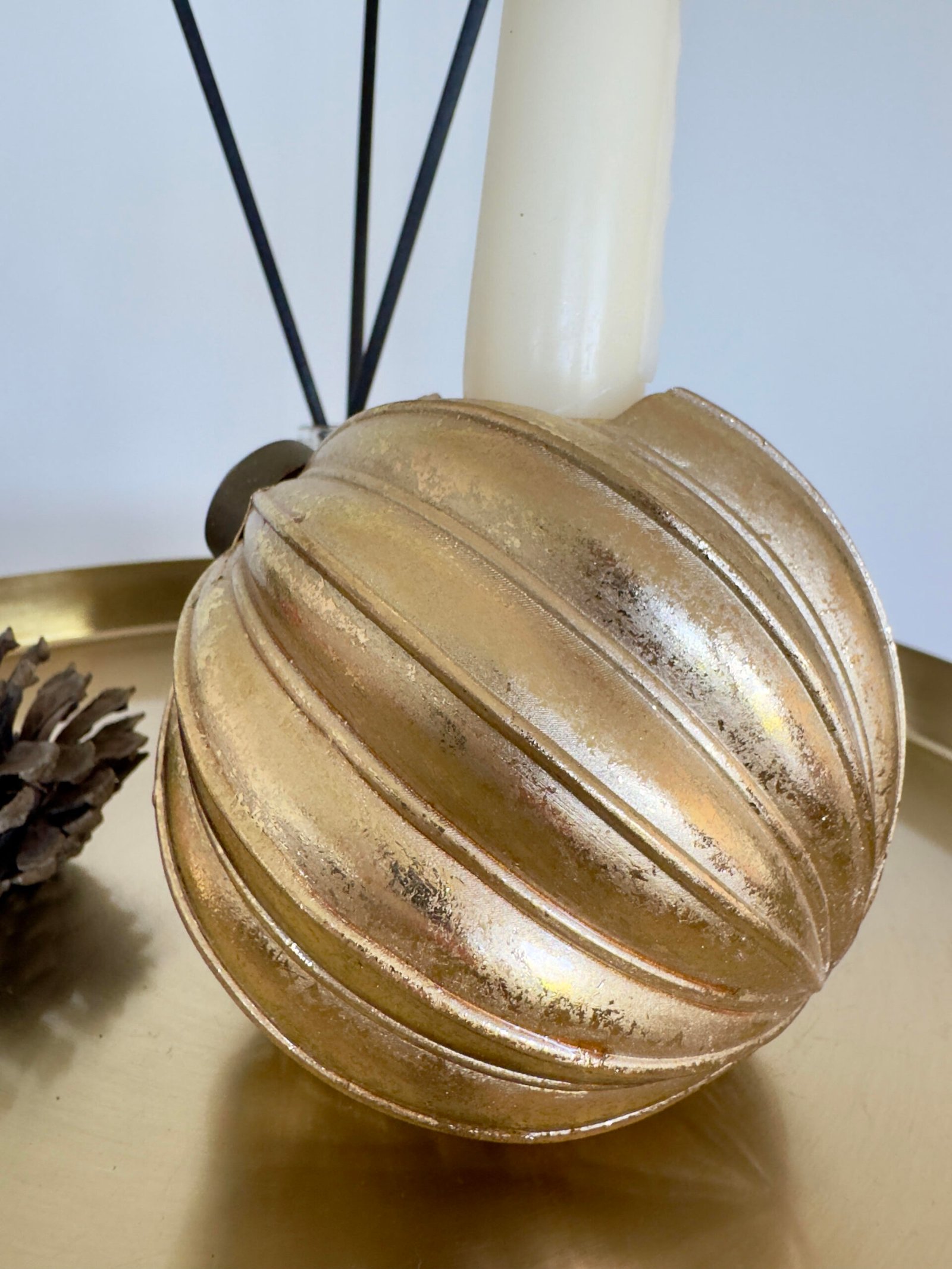 Puikiai dera su tokia pačia bronzinės spalvos žvakide arba kalėdiniu vazonu.