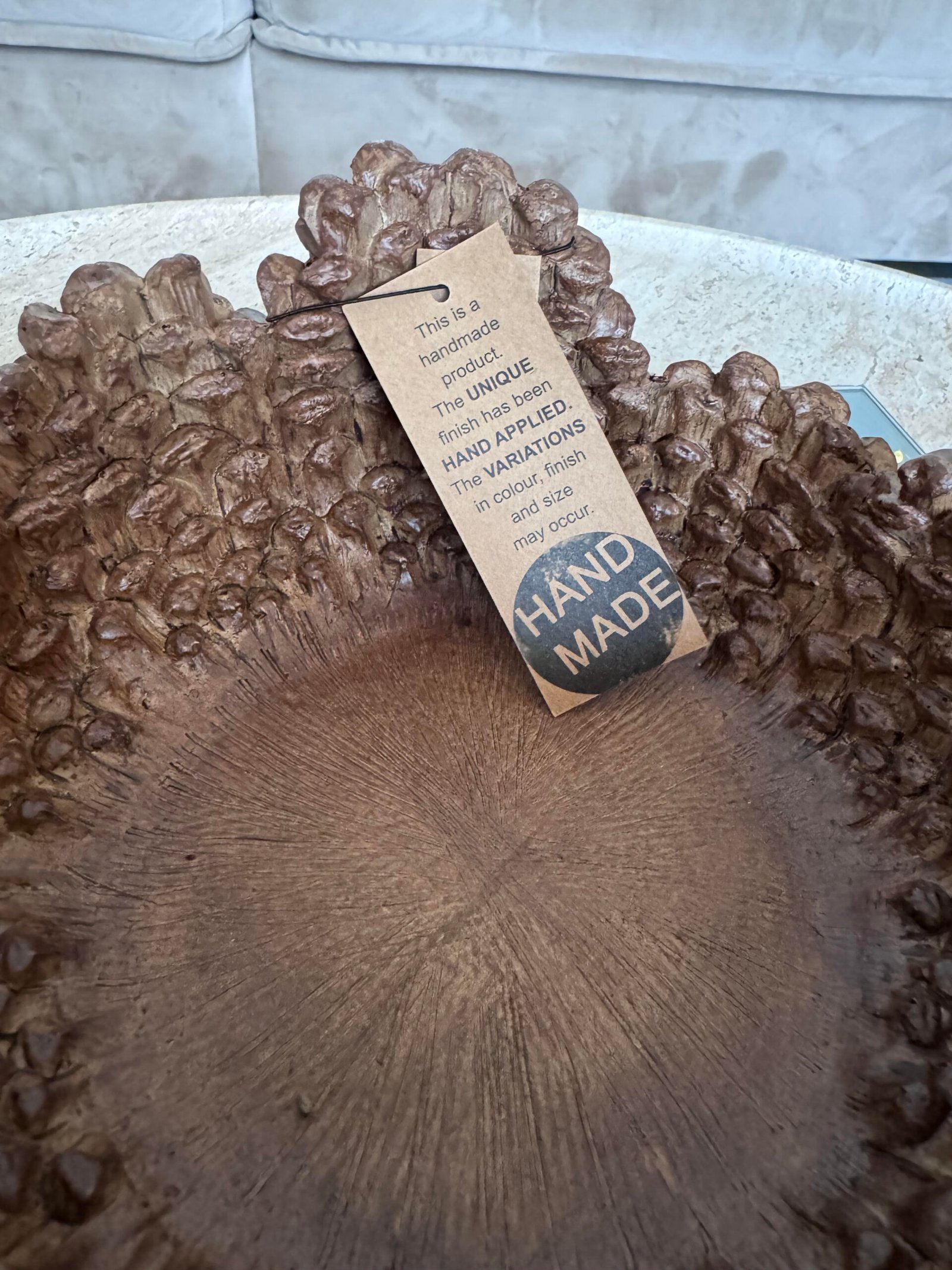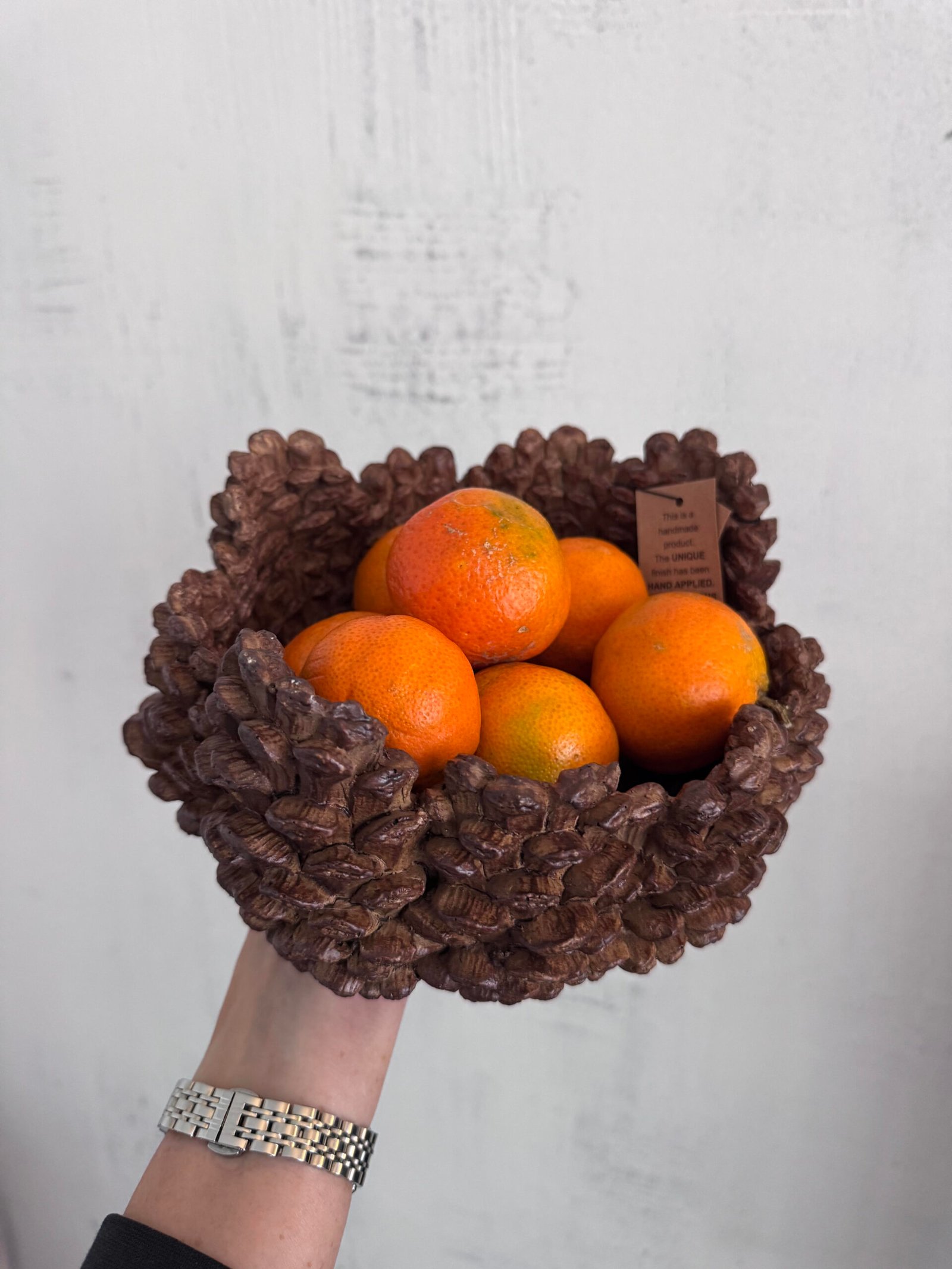 Mielas rankų darbo kankorėžių dubuo.