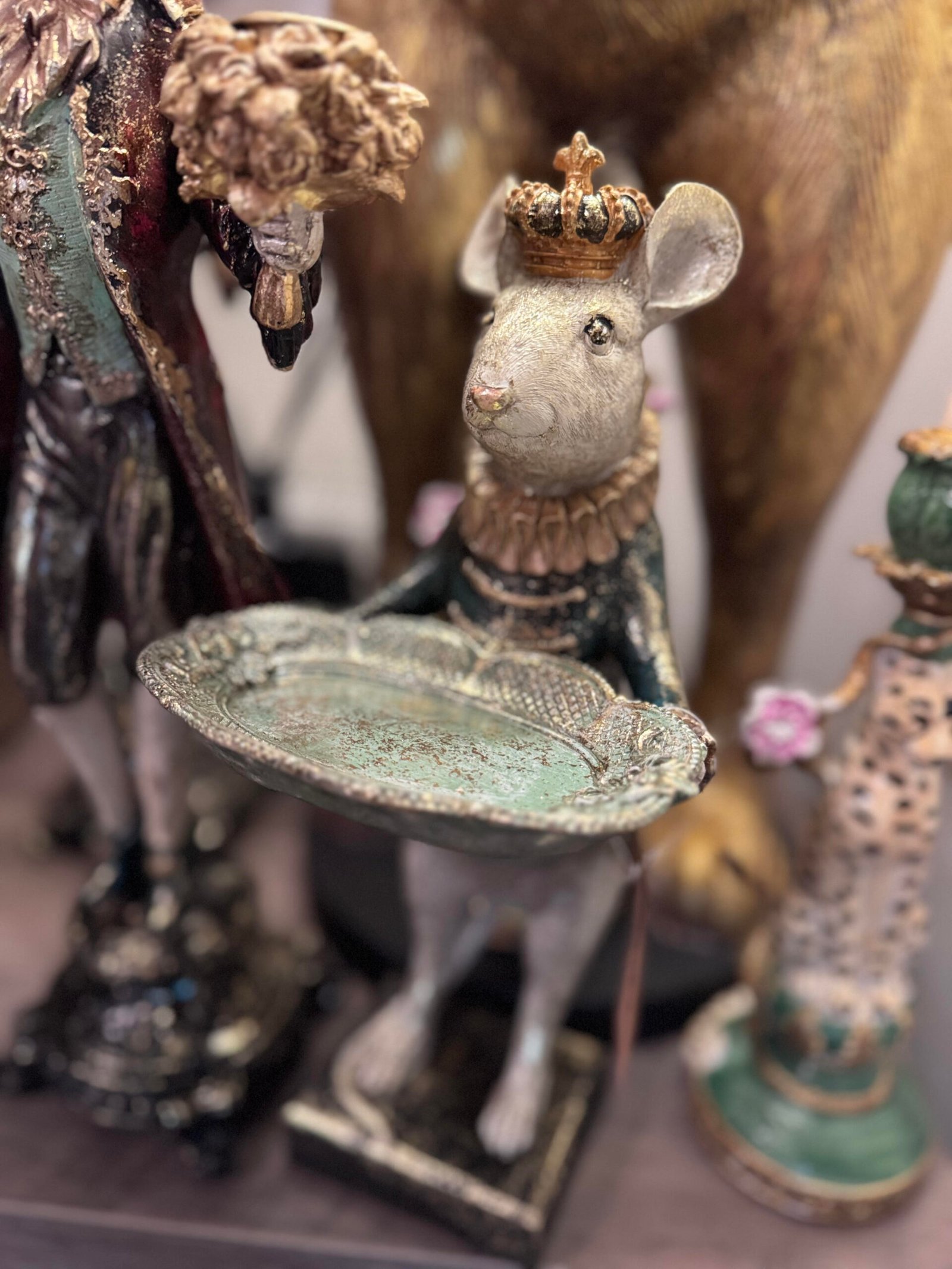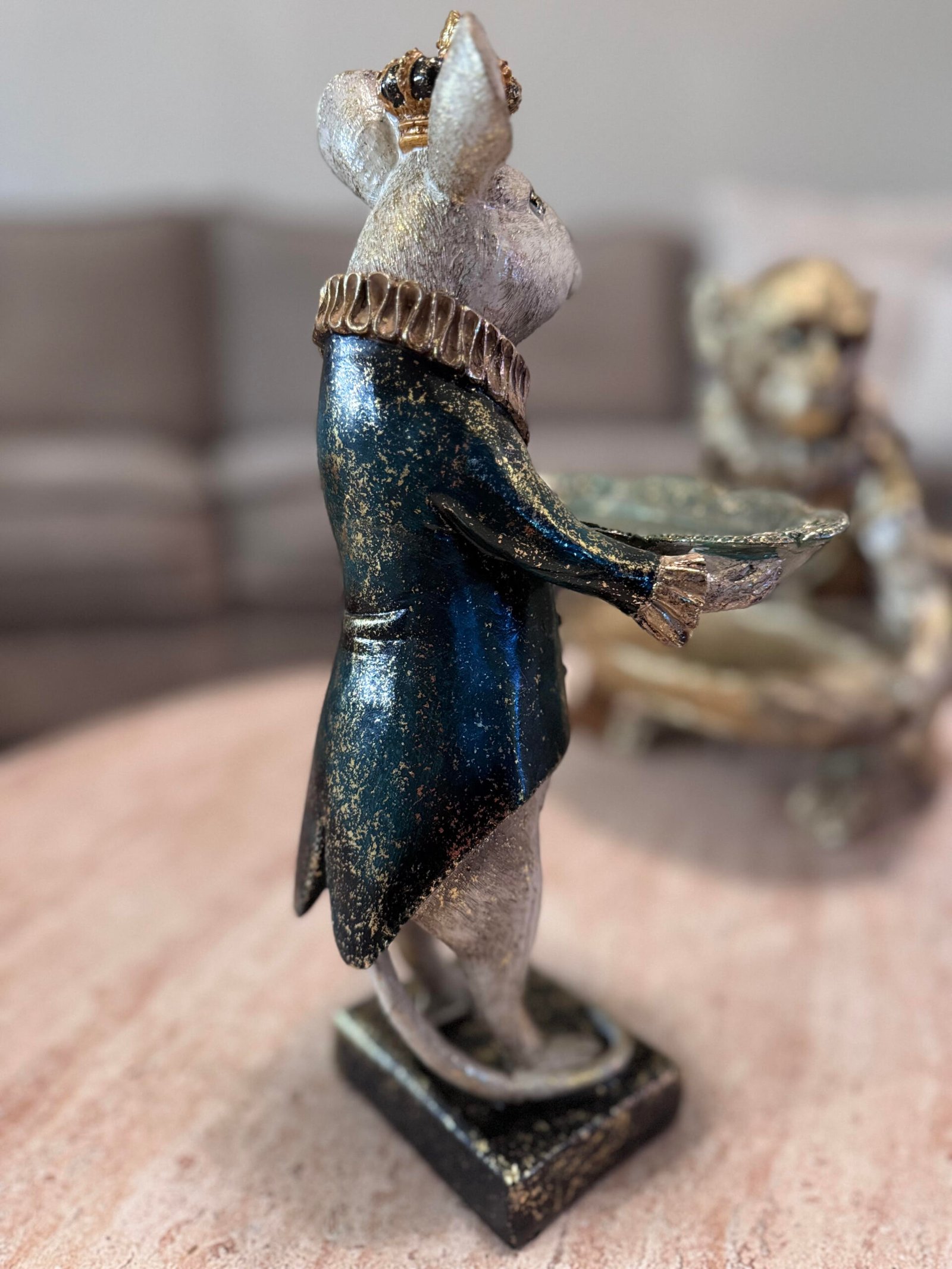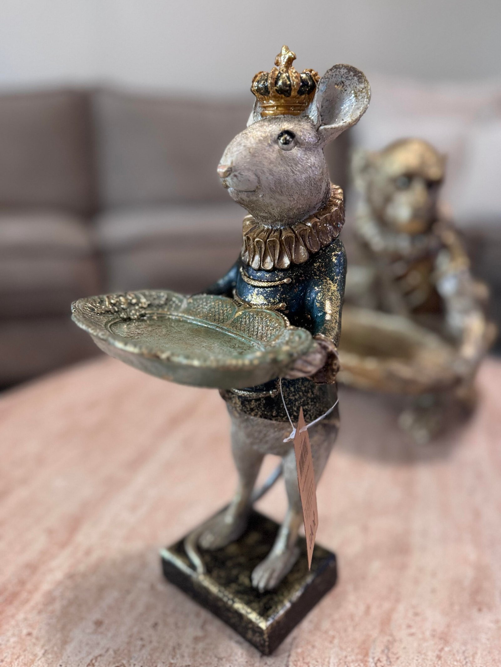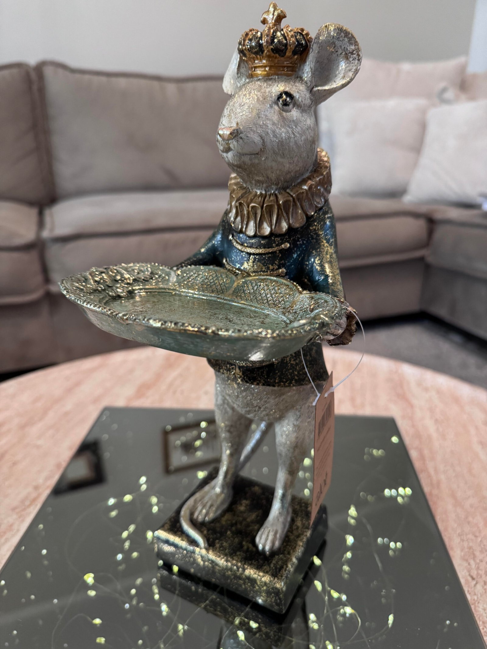 Karališkas peliukas rankose laikantis padėklą.